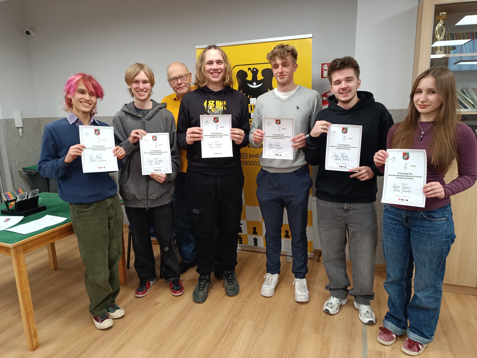 27 lutego odbył się kolejny turniej Dolnośląskiej Ligi Szkolnej w brydżu. Pierwsze miejsce zajął Jakub Czogalla (4A1), grający w parze z Aleksem Bukatem (I LO w Jeleniej Górze). Drugie miejsce zdobyli uczniowie XIV Liceum Ogólnokształcącego we Wrocławiu – Filip Mucha (4A1) i Michał Dziedzic (4A2). Serdecznie gratulujemy zawodnikom bardzo dobrych wyników.