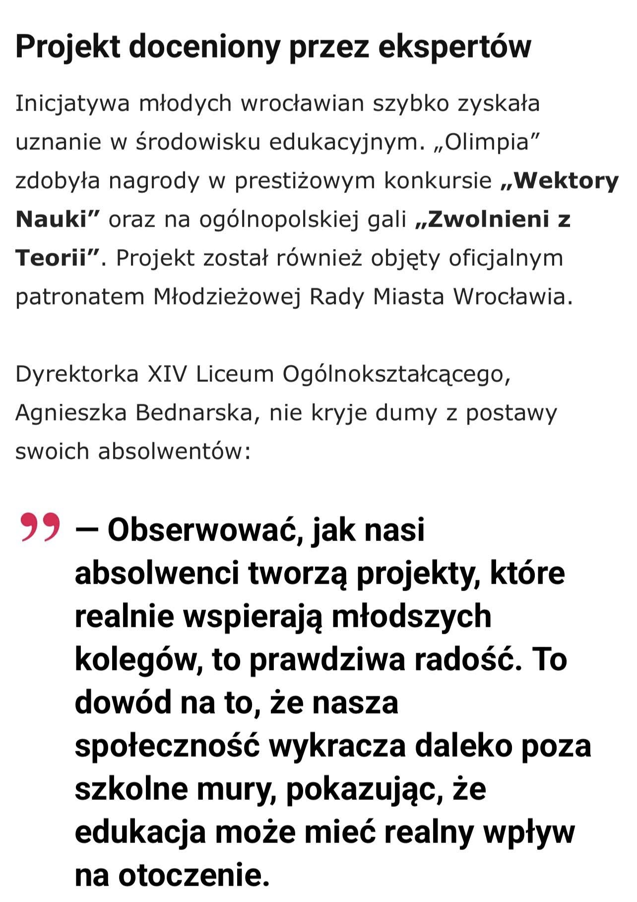 Na tym się jednak nie skończyło! Olimpia powstała 2025 i stworzona przez absolwentów naszej szkoły zyskała cała podstawę programową a od tego roku z sukcesem mogą z niej się uczyć osoby pragnące zdobyć laury Olimpijskie.