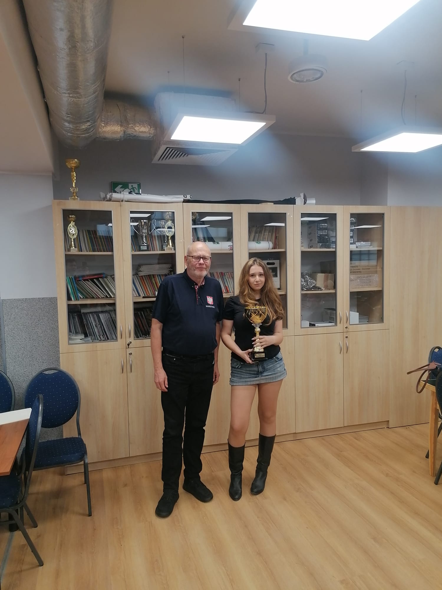 Na zdjęciu Helena Schindler, która odebrała puchar w imieniu szkoły za zajęcie I miejsca w klasyfikacji drużynowej.