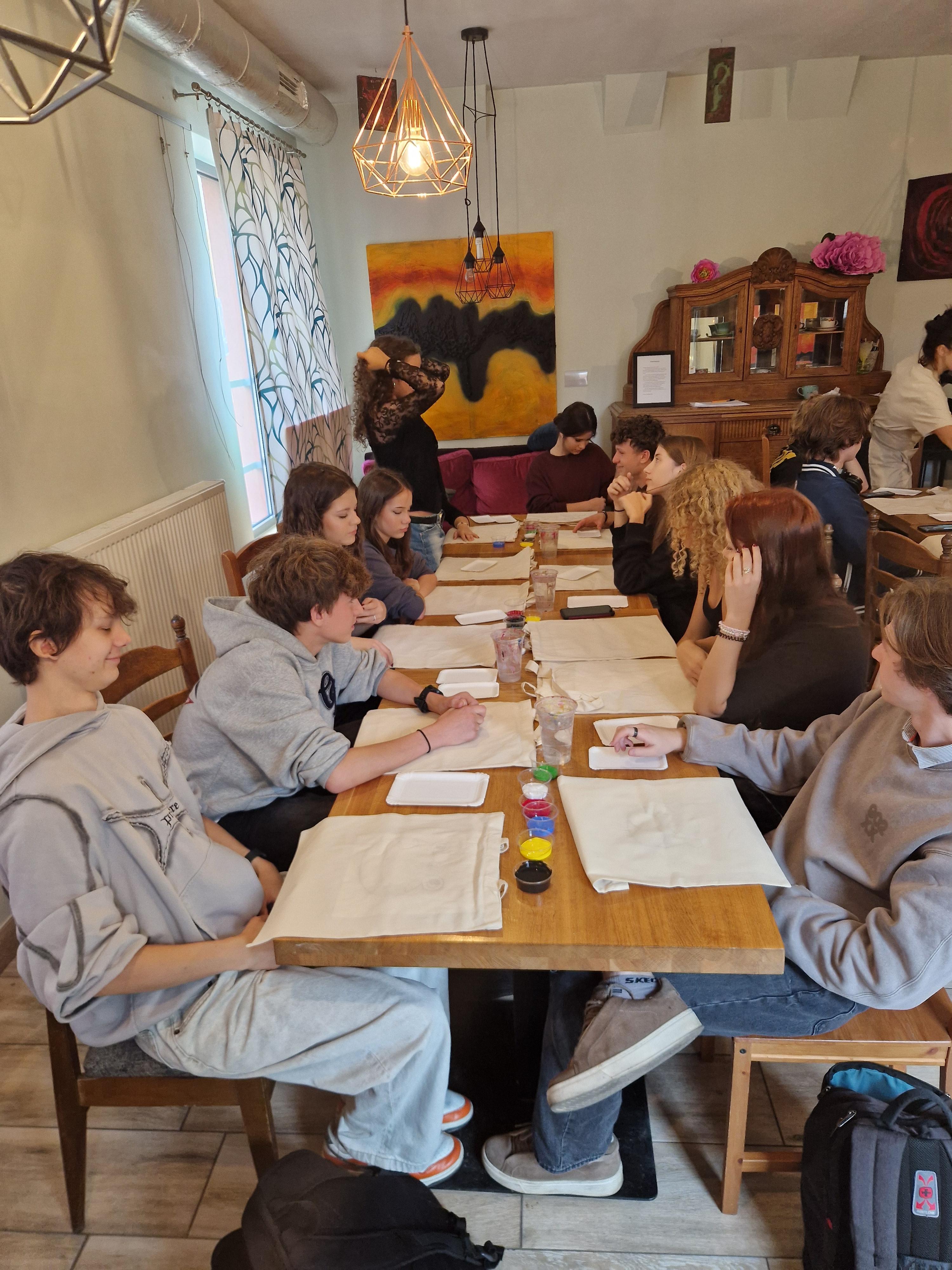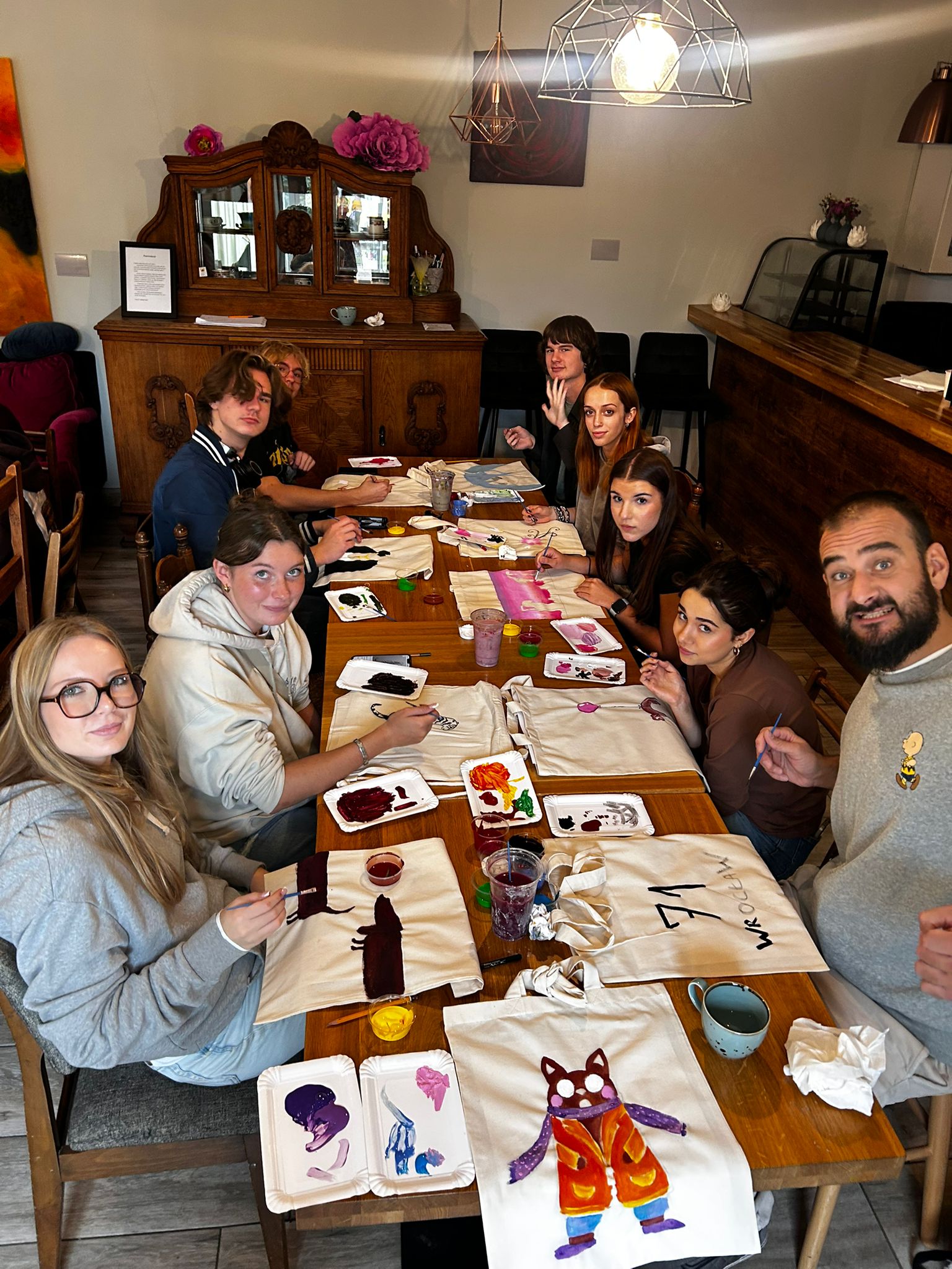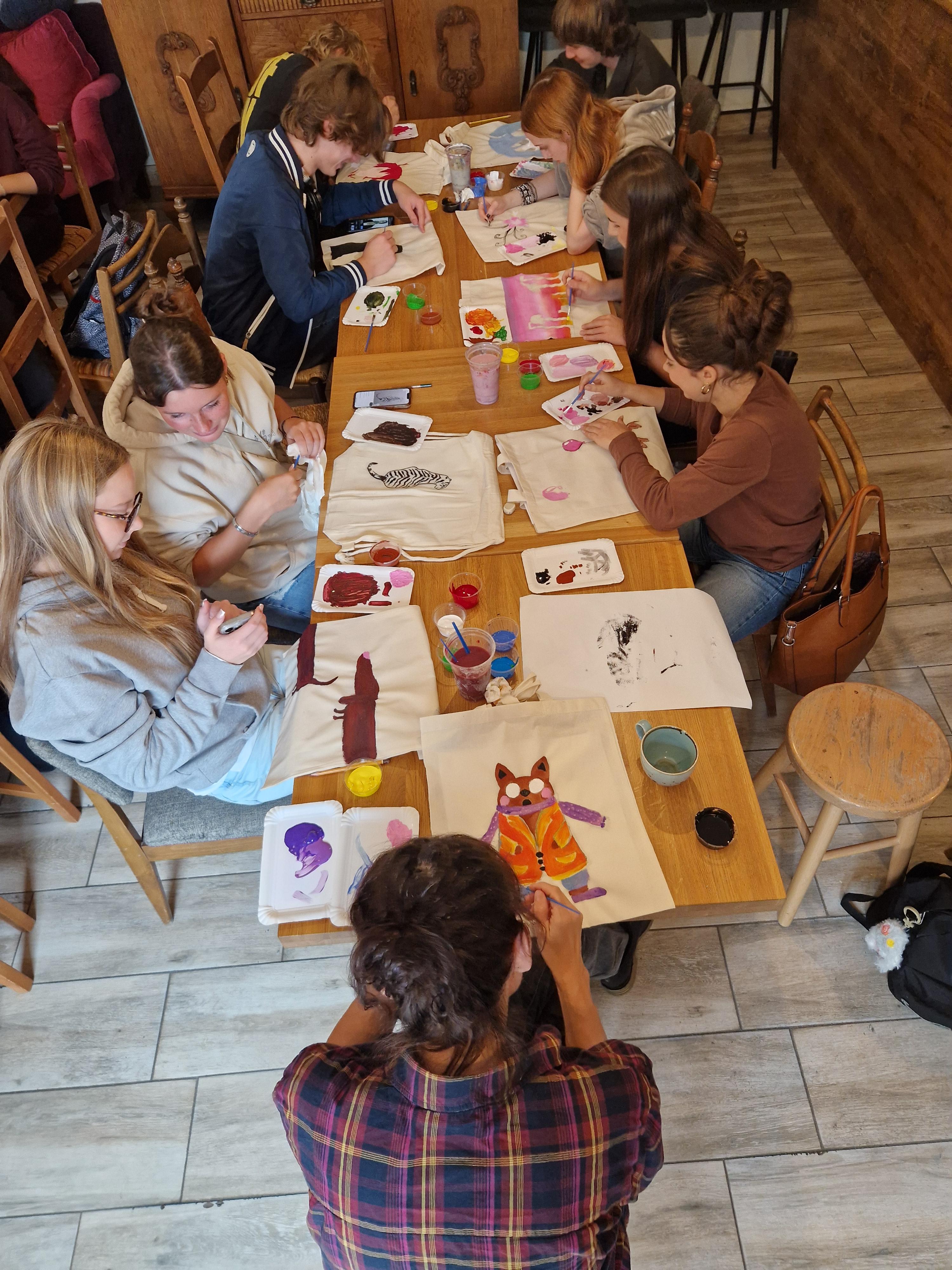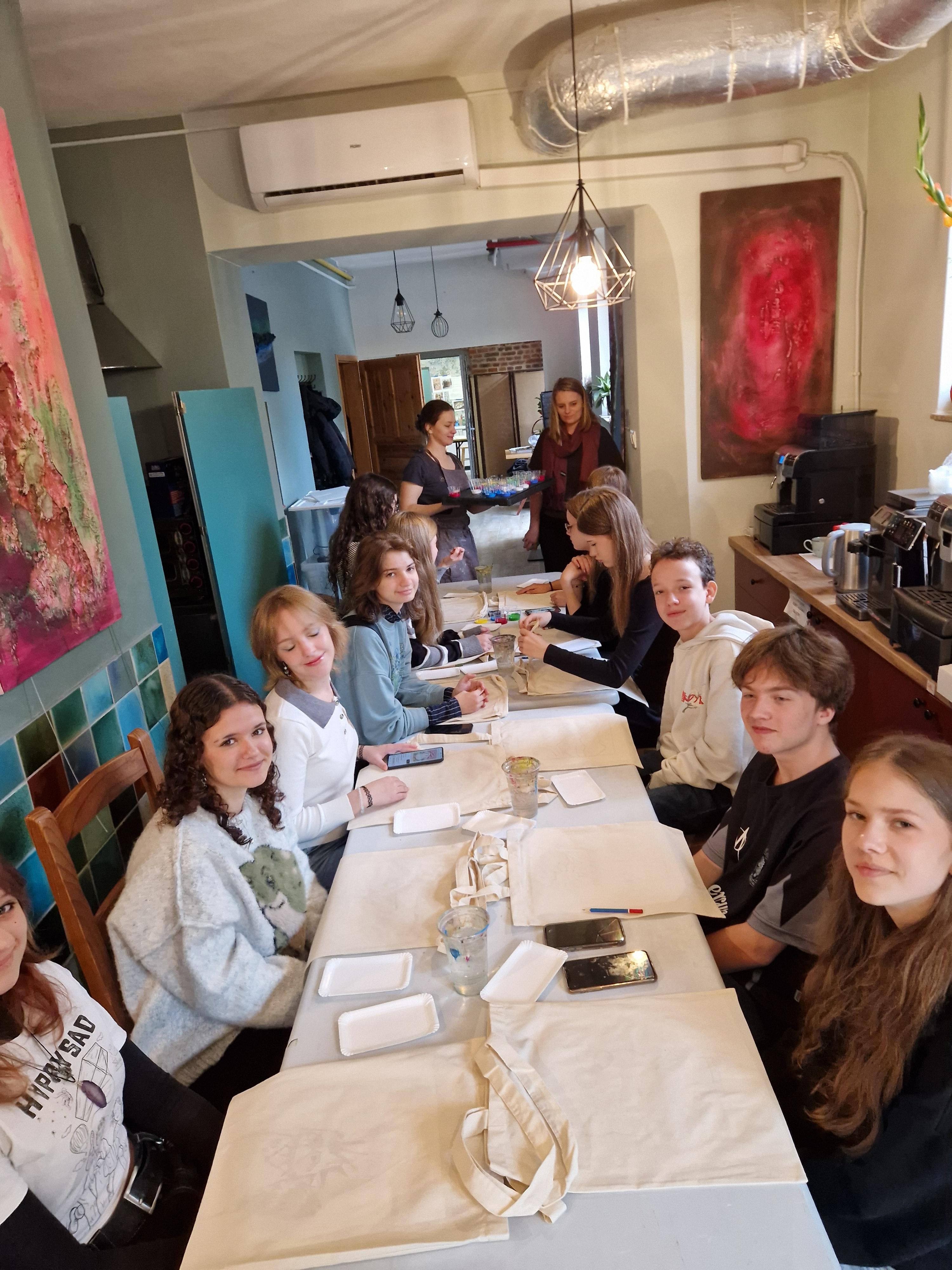 Dziś wraz z Radą Samorządu Uczniowskiego wybraliśmy się na wycieczkę integracyjną, podczas której w zaprzyjaźnionej pracowni artystycznej malowaliśmy torby. W trakcie tych twórczych zajęć zaplanowaliśmy działania Samorządu XIV LO na cały rok szkolny.