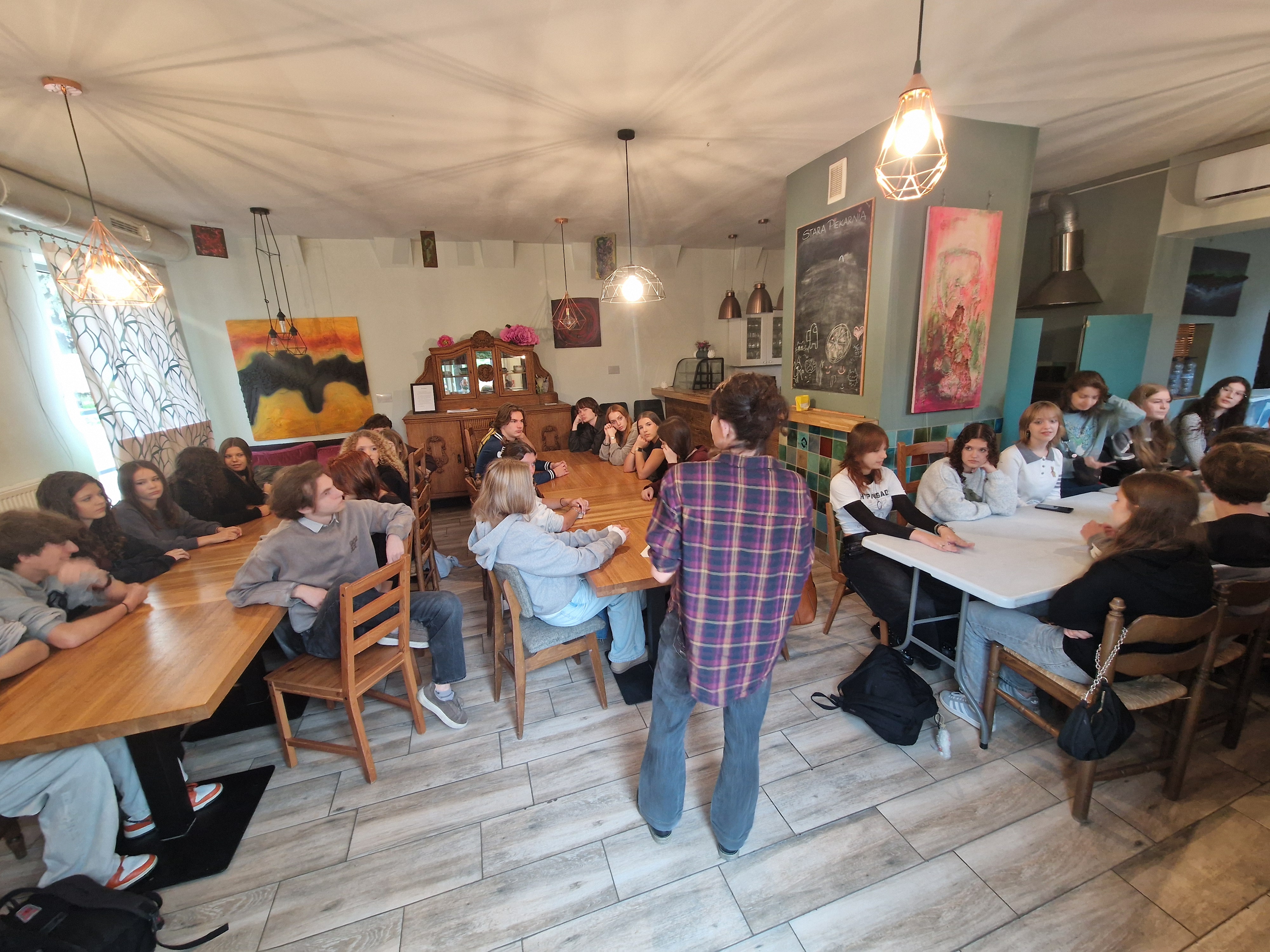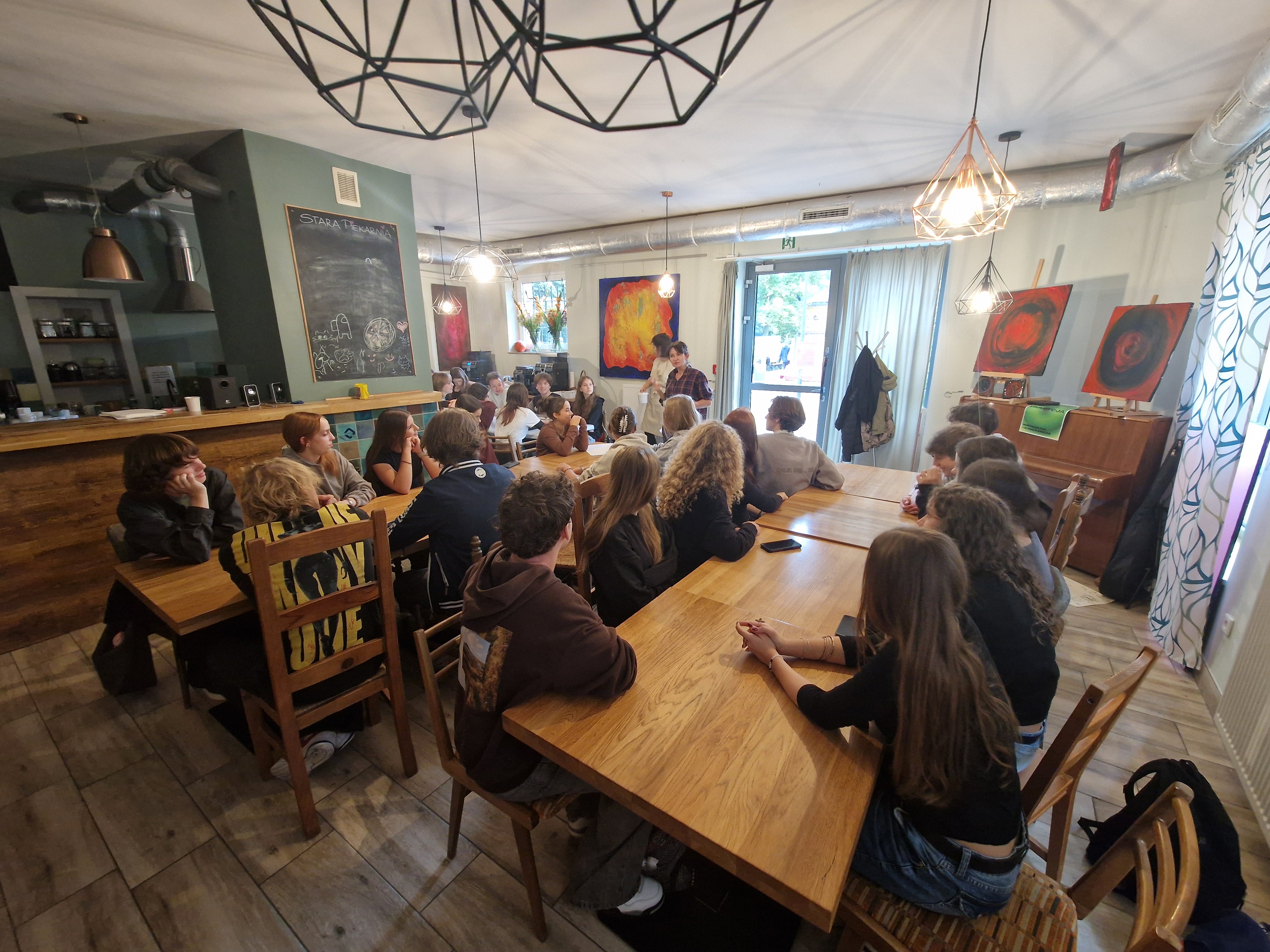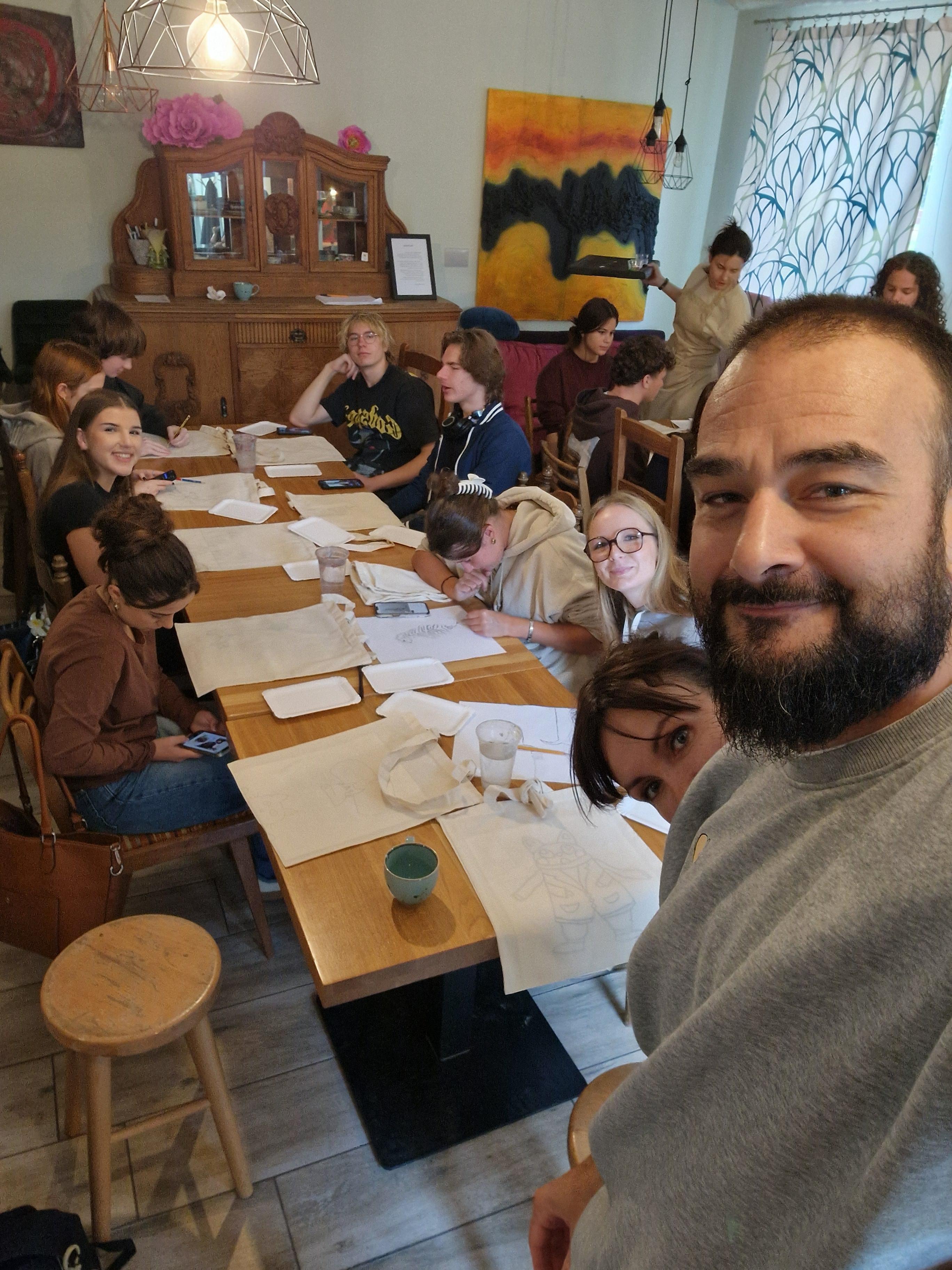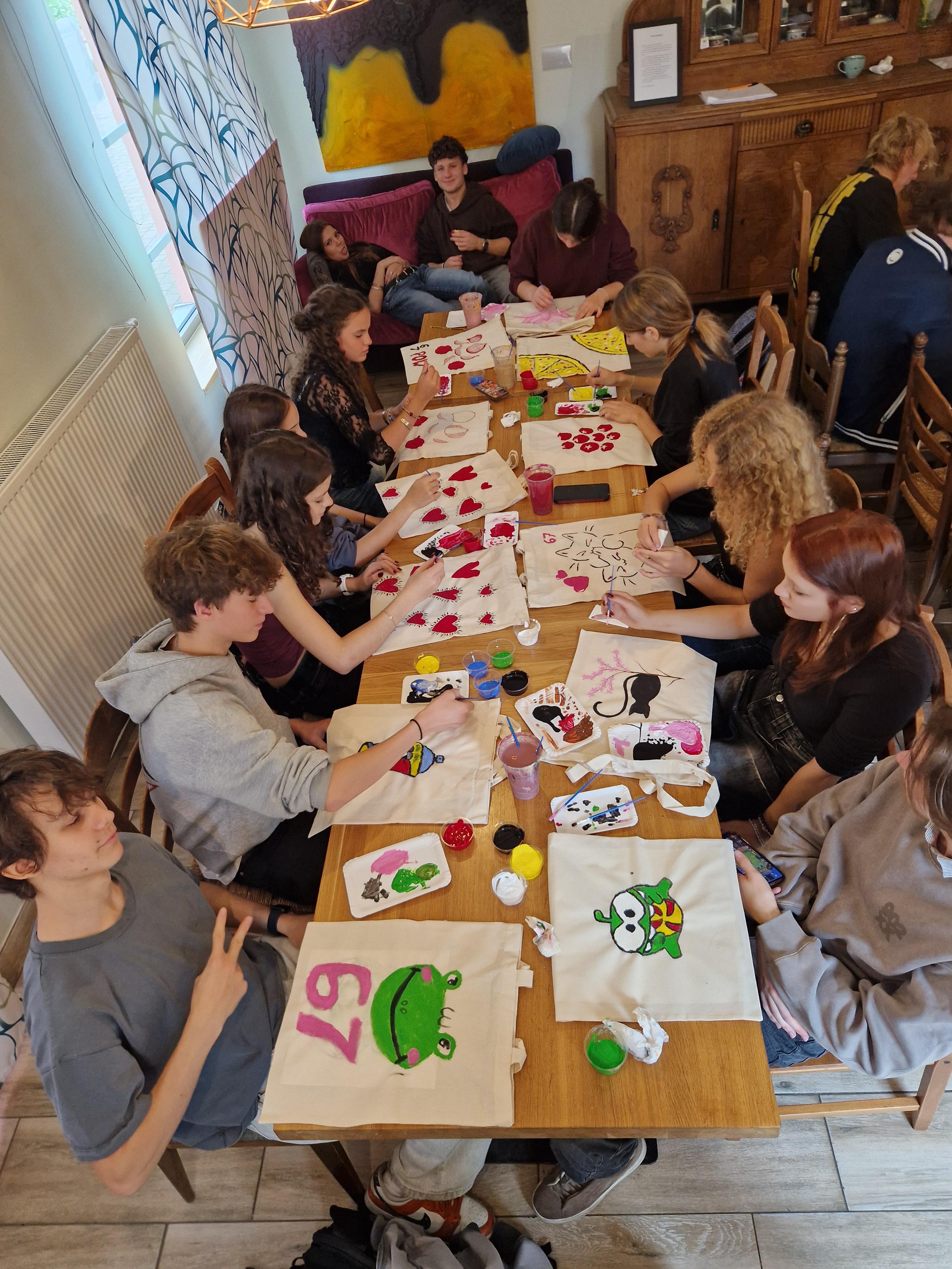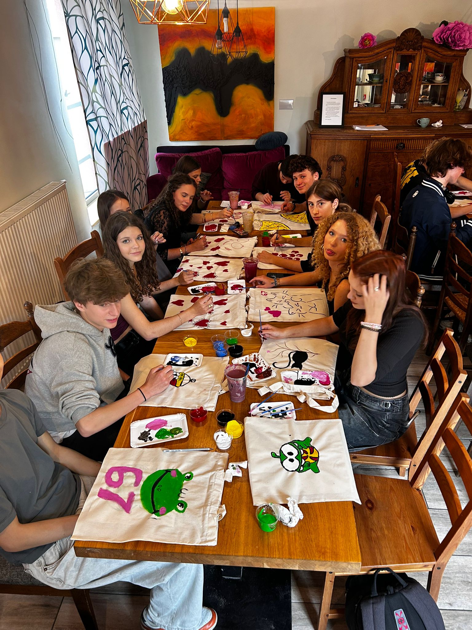 Dziś wraz z Radą Samorządu Uczniowskiego wybraliśmy się na wycieczkę integracyjną, podczas której w zaprzyjaźnionej pracowni artystycznej malowaliśmy torby. W trakcie tych twórczych zajęć zaplanowaliśmy działania Samorządu XIV LO na cały rok szkolny.