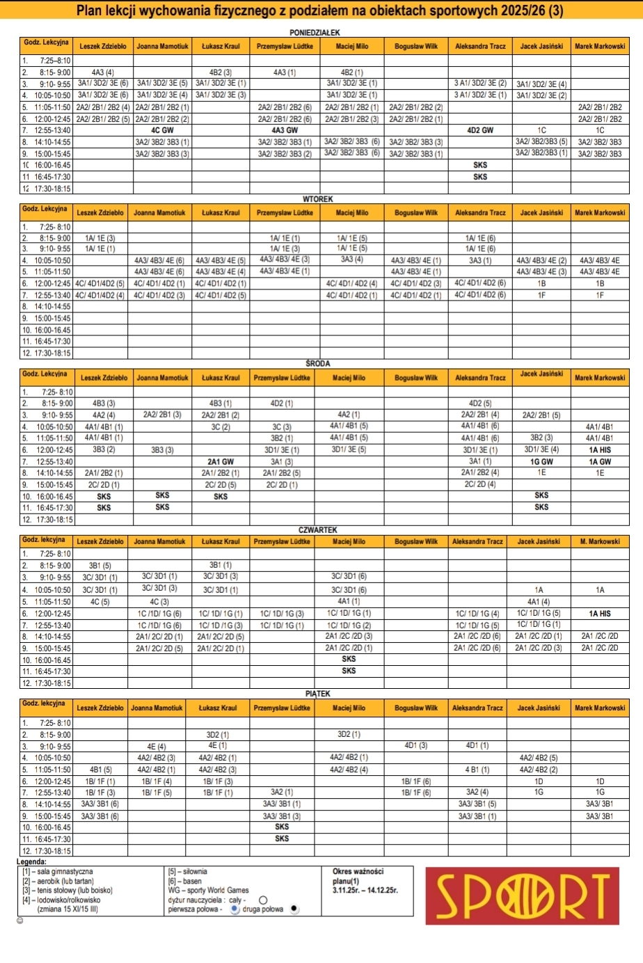 Po zmianach planu, czeka nas zmiana obiektów sportowych.
