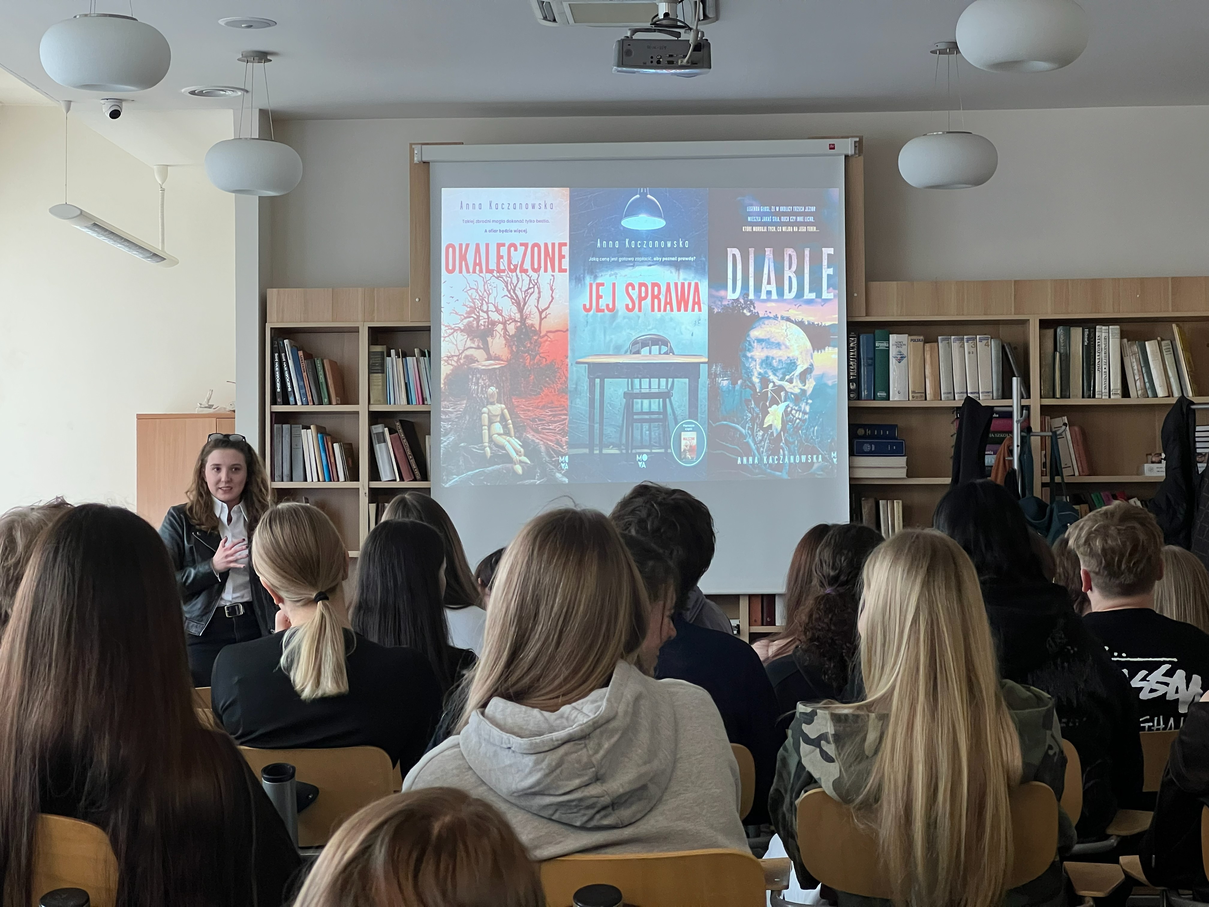 Dnia 9 kwietnia odbyło się w czytelni spotkanie autorskie z Anną Kaczonowską – pisarką kryminałów, znaną m. in. z książek „Diable”, „Jej sprawa” oraz „Okaleczone”. Pani Anna jest z wykształcenia stomatologiem, ukończyła Uniwersytet Medyczny im. Piastów Śląskich. Jest również pasjonatką teatru i Przeglądu Piosenki Aktorskiej. Mieszka we Wrocławiu, który jest jej rodzinny miastem.