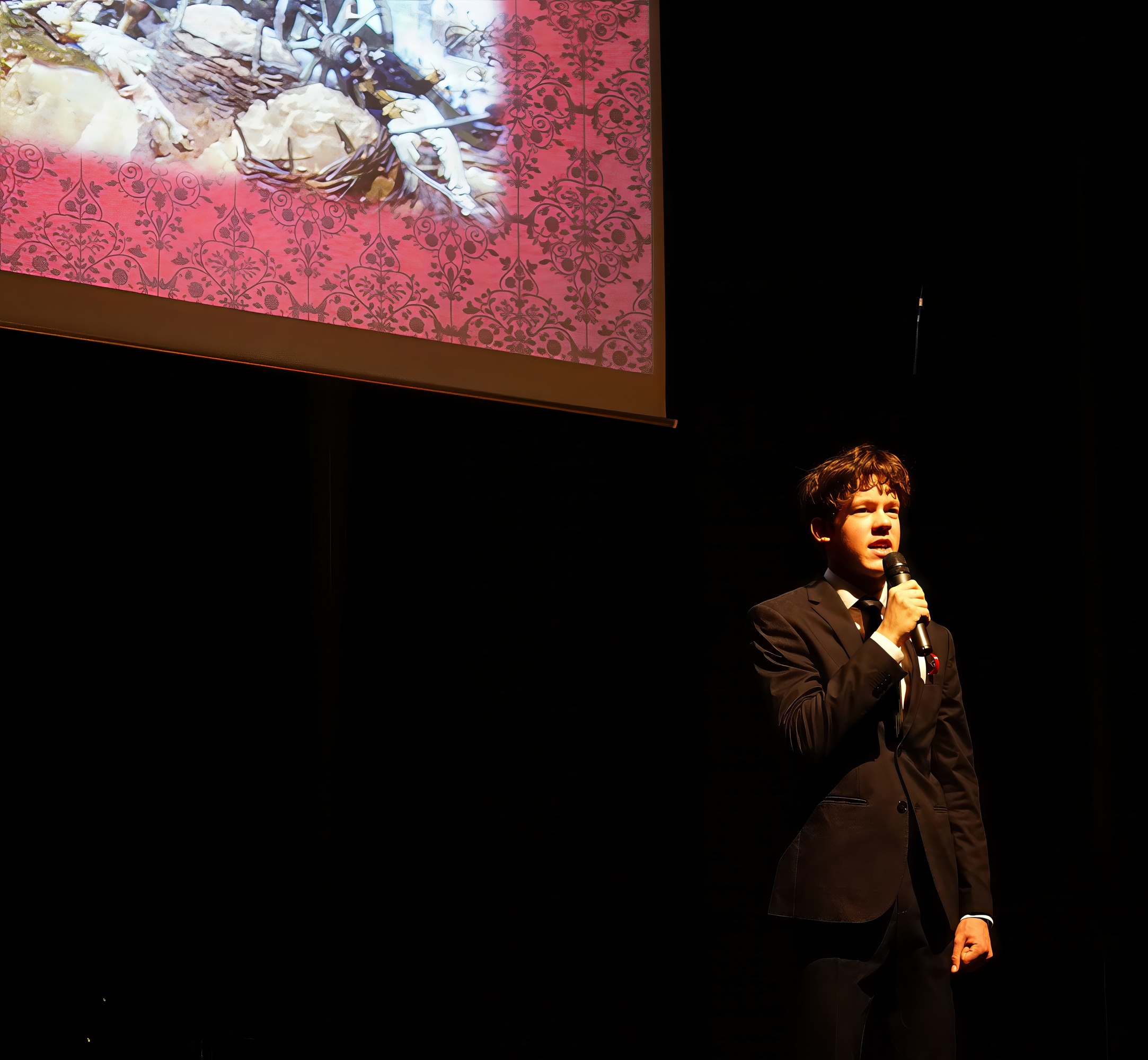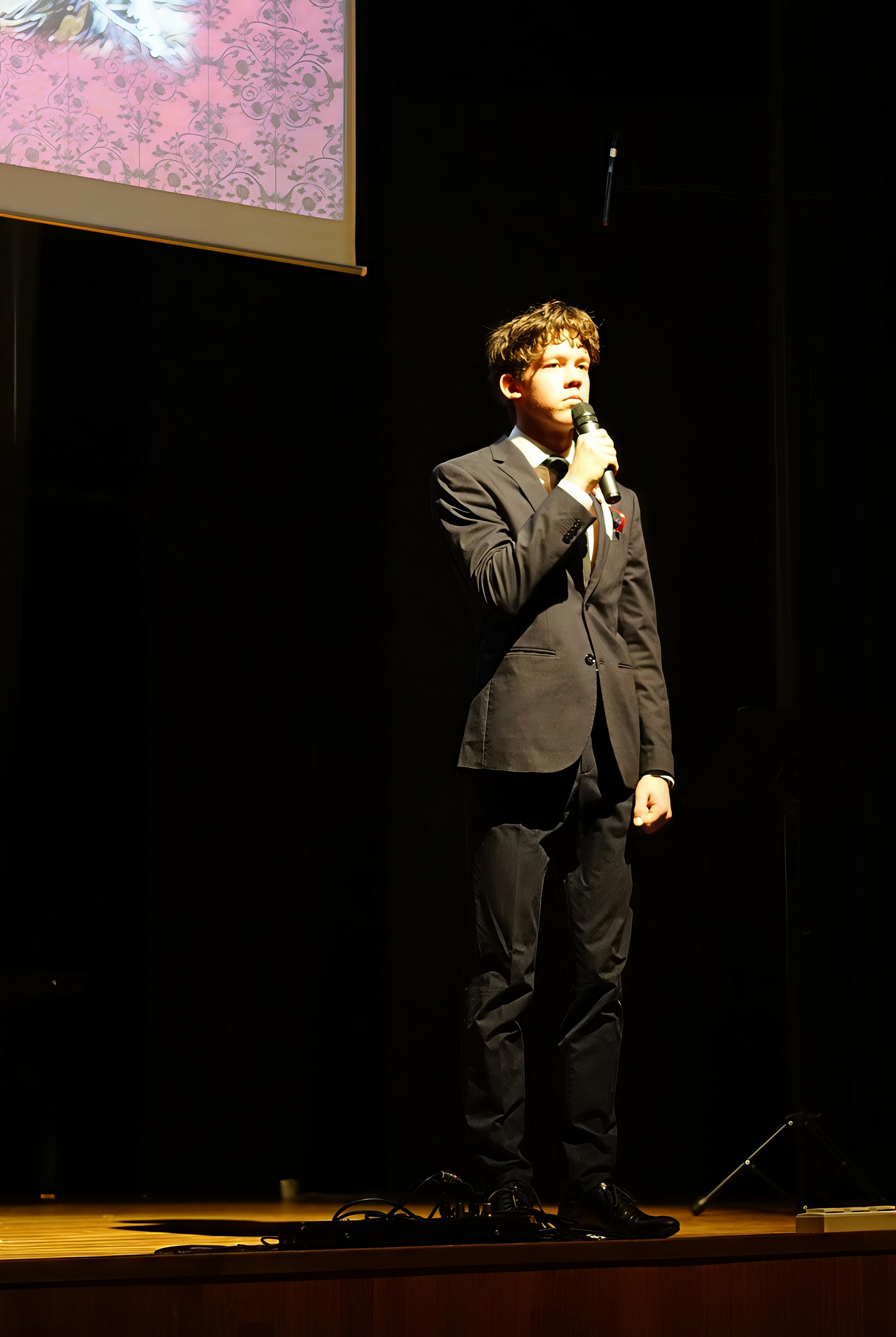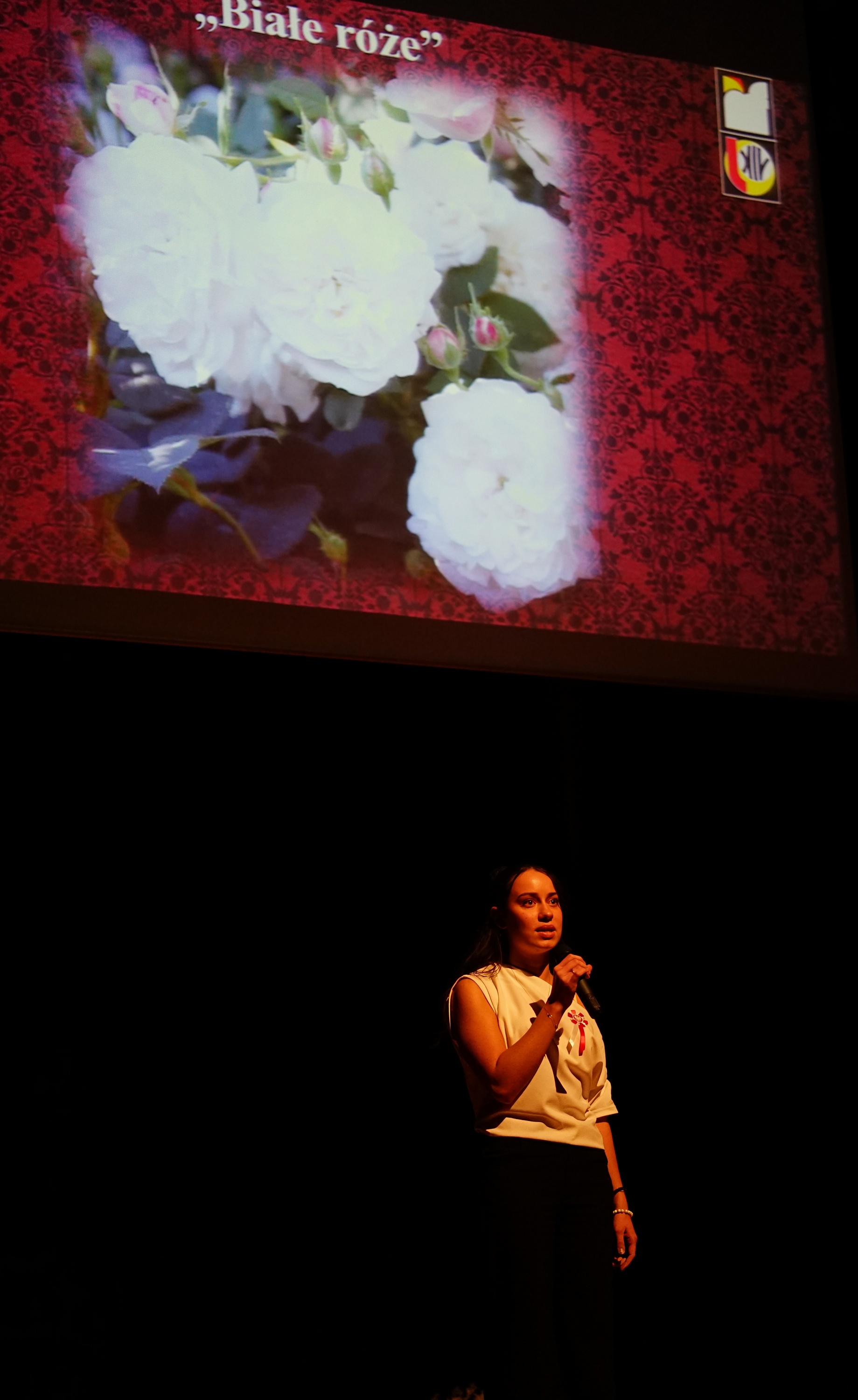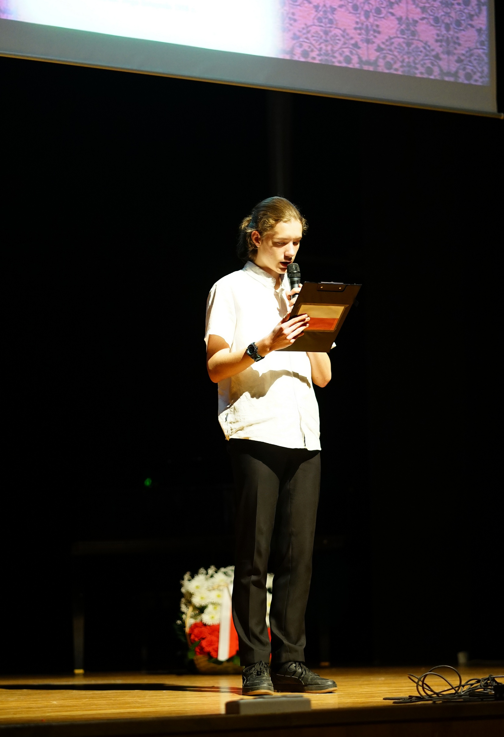 w wykonaniu Vincenta Kubota z klasy 1F. Na scenie - odczytując depeszę Józefa Piłsudskiego notyfikującą powstania niepodległego państwa polskiego - wystąpili również Nathaniel Atamańczyk-Carrillo oraz Mateusz Kołodziejczak z klasy 1F.