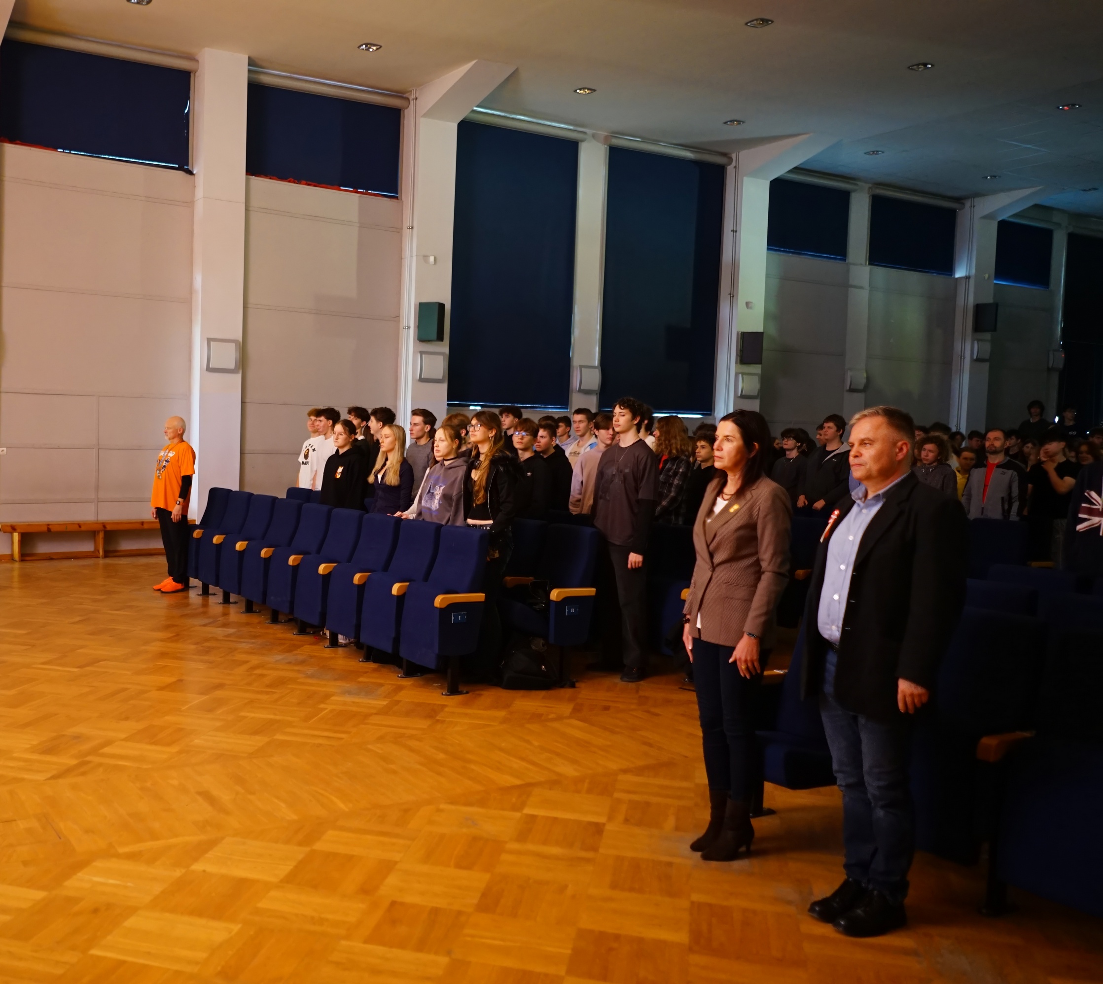 W uroczystości uczestniczył również Poczet Sztandarowy Szkoły reprezentowany przez Maję Joachimiak z klasy 2D oraz Kingę Ćwikłę i Wojtka Żugaja z klasy 2C.